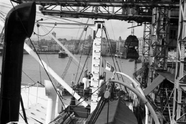 My grandfather became a partner in the “Pippo Rebagliati” Port Company of Savona on January 1, 1957. At that time, “port operations consisting in the loading, downloading, transhipment, storage and movement of goods and any other material in the port area were exclusively reserved to the workers constituted in port companies or groups with legal personality”. Today, this is no longer like this. However, in Italy, until the 1990s, the port companies had exclusive rights to manage port operations. My grandfather worked in the“drayage” team. Drayage was defined as “the operation of removing goods from the holds of a ship to bring them on deck”.